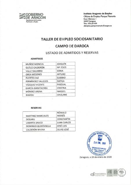 • APORTAR ANTES DEL DÍA 14 DE FEBRERO DE 2020 EN LA FUNDACIÓN CAMPO DE DAROCA, O EN LA AGENCIA DE EMPLEO Y DESARROLLO COMARCAL LA SIGUIENTE DOCUMENTACIÓN: